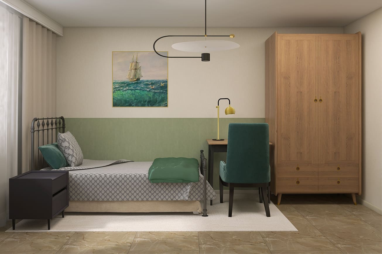 Мы проработали проект с одной из студенток, сделали визуализации, оставалось несколько дней до защиты, как вдруг она попросила за свою коллегу, не помогу ли я ей с визуализацией. Я увидела проект и поняла, что не готова выдать такой уровень. Оказалось, что она работала с визуализатором в 3DS Max, но он отказался вносить последние правки перед защитой. Видимо, их было уже слишком много. А преподаватели попросили заменить диван, светильники и что-то еще.