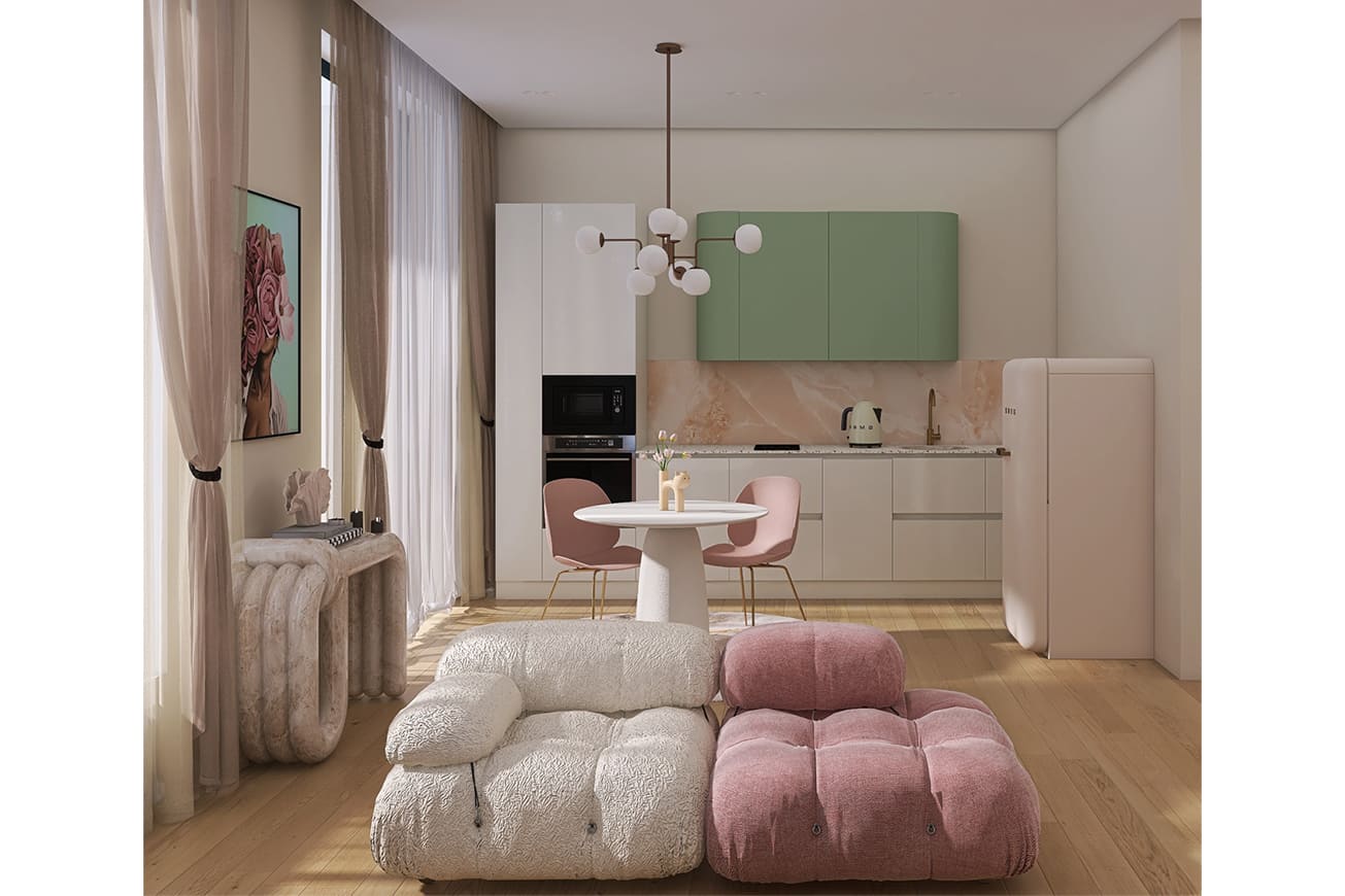 Для меня эта история стала поводом прокачаться не только как визуализатору, но и как дизайнеру. Я активно использовала функции Homestyler, которые «откладывала на потом». Это режим Lightmix и частичная ретушь с тонкими настройками. Также я прокачалась в более реалистичном моделировании потолочных встроенных светильников. Расширила кругозор по дизайнерским предметам мебели и светильникам.