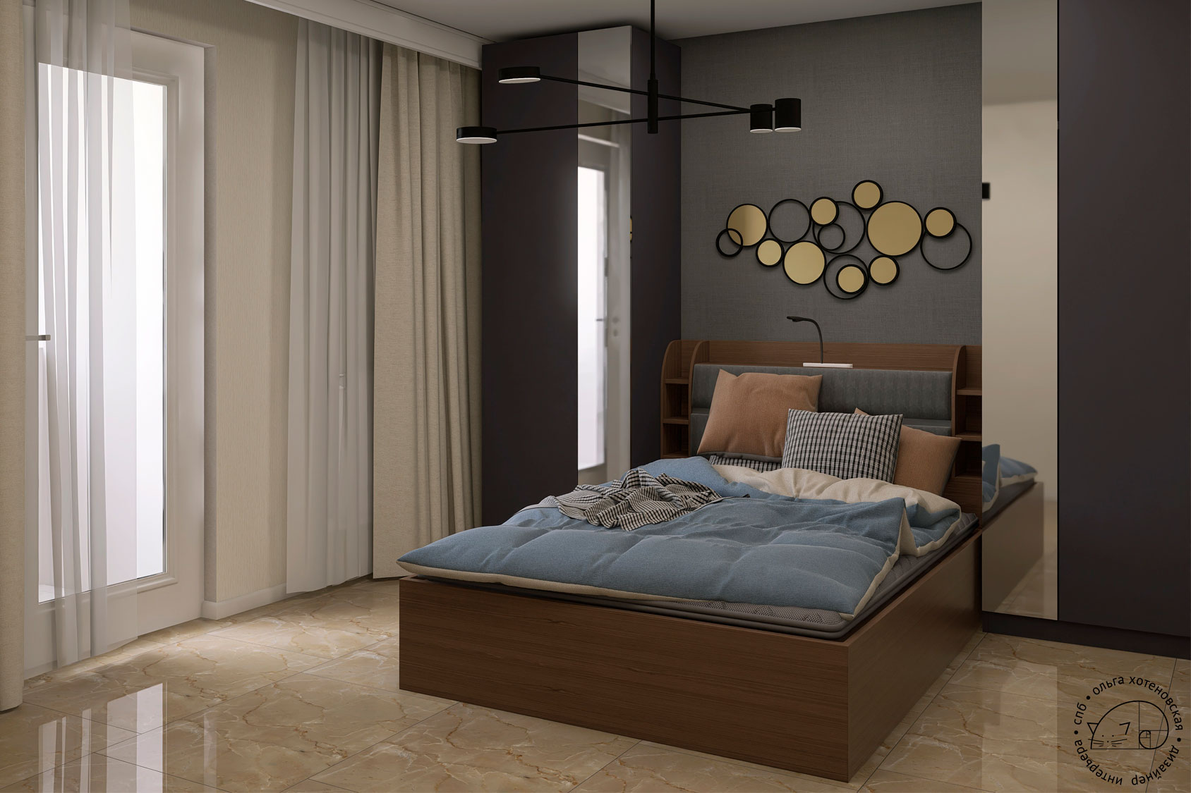 Я вспомнила, что накануне мне писал молодой человек с предложением о сотрудничестве в области визуализаций. И его работы мне показались очень достойными. Также он писал, что свободен. Я за это зацепилась, ведь это большая проблема — найти свободного визуализатора, который за несколько дней соберет сцену и настроит материалы с освещением. Я познакомила их и с чистой душой продолжила заниматься своими делами. Не тут-то было. Через несколько дней мне снова написала эта девушка, потому что у того визуализатора сломался ПК, до защиты 3 дня, что делать? Делать визуализации в Хоумстайлер.
