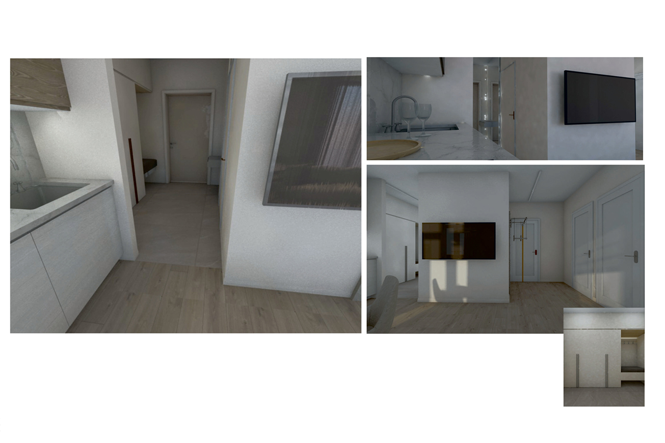 В начале 2025 года я решила: всё, хватит бояться, пора работать по специальности. Мои первые проекты рождались в онлайн-конструкторах типа Remplanner, визуалы собирались в виде коллажей в CorelDRAW, а планировки делались в Archicad. Немного Франкенштейн, но каждый элемент — от чистого сердца.